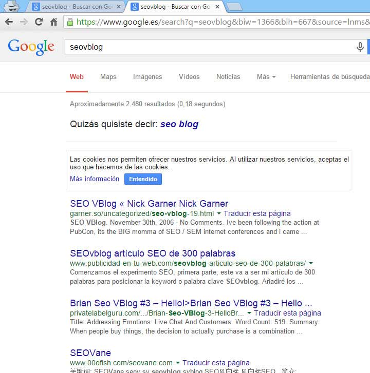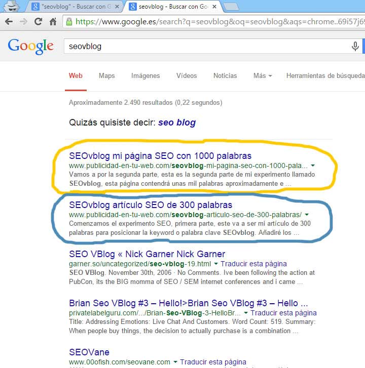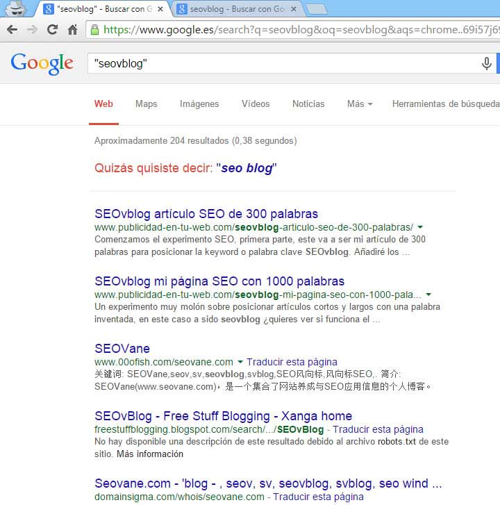 Esta entrada ahora también posicionará por las palabras Seovblog al explicar este experimento, si crees saber que va a pasar entre los tres, déjame un comentario mencionando cual aparecerá en la primera posición de Google.